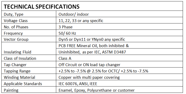 Three Phase Power Distribution Transformer
